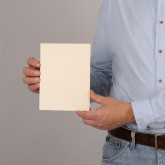 Кожаная обложка фотокниги изготавливается из европейской экокожи с возможностью декорирования подиумом, который увеличивает плотность обложки и улучшает внешний вид. Данная опция сочетается с фото-вставкой или металлическим шильдом, цвет которого можно выбрать в зависимости от оттенка кожи: золотой или серебряный. Персонализация добавляет обложке изысканность. При каждом прикосновении к этой фотокниге, ощущается тактильное удовольствие от её теплой и приятной на ощупь текстуры, что подчеркивает уникальность хранящихся внутри фотографий. Эти произведения ручной работы вызывают глубокое восхищение. Блок страниц крепится к обложке на термоклей и закрывается корешком двух видов: "французский" и "круглый".